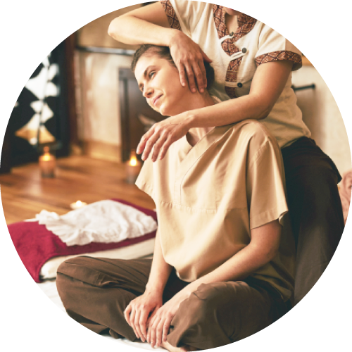 Thai yoga massage uses gentle pressure with oil and Tiger Balm and stretching LEARN MORE